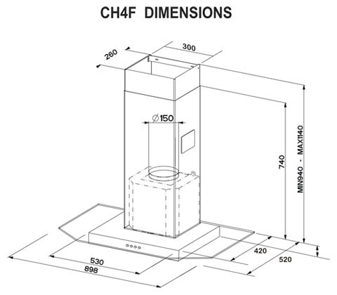 900mm stainless steel and glass canopy design – stylish and durable for any kitchen.