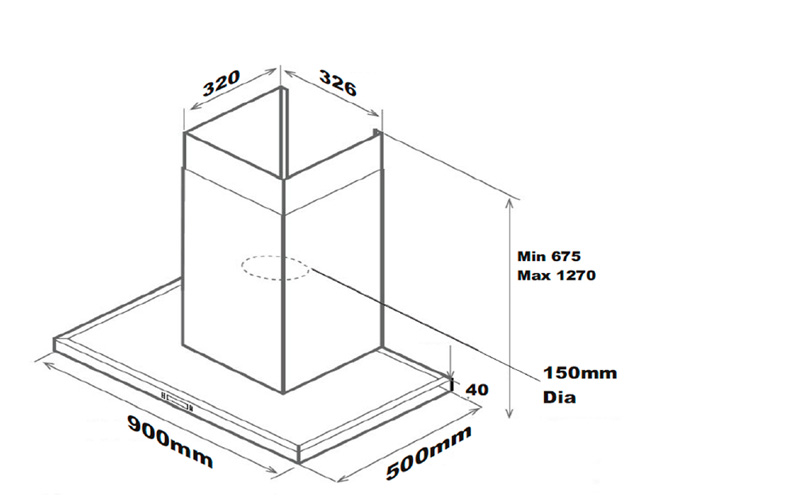 • Slimline 900mm canopy design – sleek and stylish for a modern kitchen.